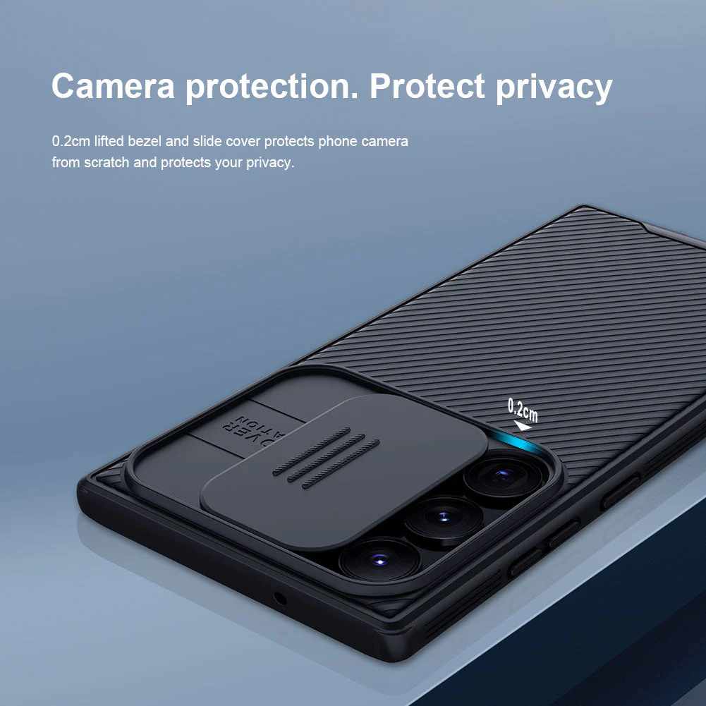 Nillkin CamShield Pro Case is compatible with Samsung Galaxy S23/S23+/S23 Ultra. CamShield is a smooth slide camera protection cover that ensures dependable safeguarding for your phone's camera lens against scratches, dirt, and unsightly fingerprints. Its minimalist design conceals a tough-as-nails construction, built to shield your device from accidental impacts. With its clean lines and understated elegance, this case is the perfect accessory for those who value both style and durability. The personalized stripe design is stylish, simple, and durable, making it suitable for business professionals.